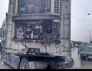 انزلاق شاحنة على أوتوستراد الزرقاء! صور