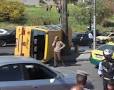 3 اصابات بتصادم باص مدرسة وحافلة