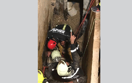 الرا ي نيوز - تمكنت إدارة البحث والإنقاذ في الإدارة العامة للنقل والإنقاذ في شرطة دبي من انتشال عامل انهال عليه تراب وأحجار داخل حفرة تجري فيها المياه، واستغرقت عملية إنقاذه نحو 5 ساعات حفاظاً على سلامة جسده.