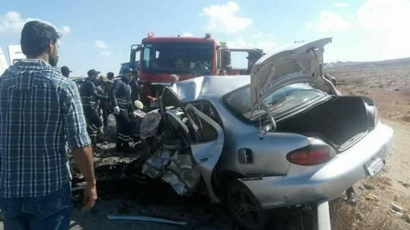 حادث تصادم مروع وقع بين مركبتين على طريق اربد الزرقاء بالقرب من جسر النعيمه أسفر عن وفاتان وأربع اصابات .