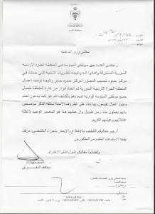 وأرفق محافظ المفرق استدعاء الموظفين المفصولين لاطلاع وزير الداخلية.