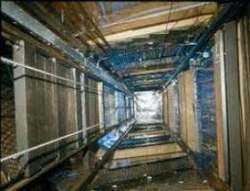 اثناء عمله في تركيب مصعد من الطابق الخامس إلى الطابق الاول داخل عمارة قيد