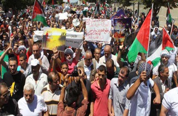 نظمت فعاليات نقابية وحزبية وشعبية اليوم الجمعة مسيرة احتجاجا على الممارسات الاسرائيلية الغاشمة والتعديات الواقعة على المقدسات الاسلامية في المسجد الاقصى/الحرم القدسي الشريف .