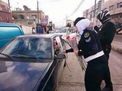 نفت مصادر أمنية قيام شرطيات سير بتوزيع ورود على المارة يوم