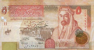 عثر أحد المواطنين في مدينة اربد على خمسة دنانير مكتوب عليها