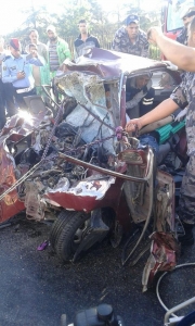 وفاة و 14 إصابة بتصادم مركبة وباص في عمان ­ صور