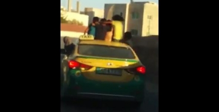 :أظهر تسجيل مصور مخالفة مدوية ارتكبها سائق سيارة عمومية بمنطقة جاوا جنوب عمان. ويعكس التسجيل حجم الاستهتار الذي وصل اليه البعض بحياة الأطفال حيث ظهروا فيه وهم يخرجون من نوافذ السيارة و"فتحة السقف"، في حين يواصل السائق المتهور طريقه بسرعة غير معقولة ضاربا قوانين المرور بعرض الحائط ومعرضا حياة الاطفال للمخاطر.