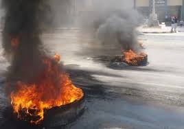 - اقدم عدد من المحتجين اليوم الاثنين على إغلاق أحد الشوارع الرئيسية في مدينة الكرك بالإطارات المشتعلة ، إحتجاجاً على القاء القبض على أحد اصحاب البسطات .