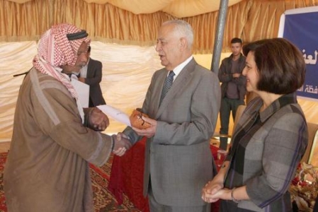 وفي كلمة لأمين عام الديوان الملكي الهاشمي، رئيس لجنة متابعة تنفيذ مبادرات جلالة الملك، يوسف حسن العيسوي، خلال حفل التسليم بحضور وزيرة التنمية الاجتماعية هالة بسيسو لطوف، أشار إلى أنه وبتسليم 13 مسكنا للأسر المستحقة يصبح مجموع المساكن التي تم إنشاؤها في لواءي الجيزة والموقر 40 مسكنا.