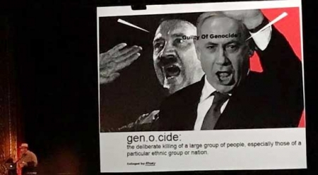 وذكرت وسائل إعلام أمريكية، الاثنين، أن مؤتمرا عقد في كلية الفن والتصميم بجامعة ميشيغان، حيث ألقى الأكاديمي "إمروي دوغولاس” كلمة وضع خلالها صورة نتنياهو وهلتر جنبا إلى جنب وكتب عبارة "مجرمي الإبادة”، وكتب تعريف الإبادة الجماعية تحت الصورة.