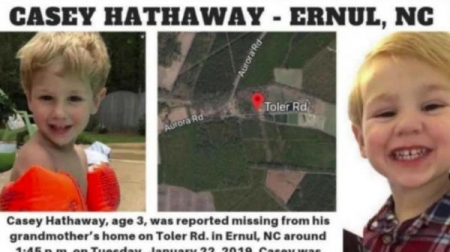 وحسب صحيفة «الغارديان» البريطانية، فقد ذهب الطفل، الذي يدعى كاسي هاثوي مع أسرته لزيارة جدته يوم الثلاثاء الماضي، عندما ذهب للعب مع طفلين آخرين في الحديقة الخلفية لمنزل جدته، لكنه ضل الطريق ولم يعد إلى المنزل مع الطفلين الآخرين.