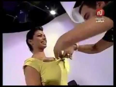 مغربي يصمم فستان فوق جسد المذيعة مباشر على الهواء