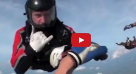 واظهر الفيديو الذي نشر بتاريخ 30/1/2014 عددا من الشبان يمارسون رياضة القفز المظلي "sky dive” من على ارتفاع 12500 قدم ،حيث اصطدم احد المشاركين بالقفزة بزميله لحظة مغادرتهم الطائرة ما ادى الى فقدانه الوعي.