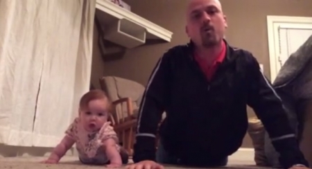 فيديو رائع ... رضيعة تشارك والدها تمارين "الضغط"