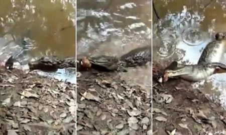- دفع الجوع تمساحاً إلى المجازفة بالهجوم على أفعى كهربائية، معولاً على أسنانه الفتاكة التي يمكنها أن تقتل أي حيوان بعضة واحدة.