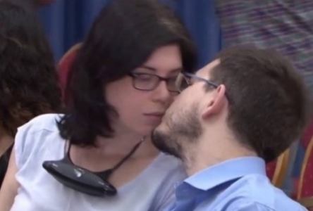التقطت عدسات المصورين "قبلة" بين فتاة وشاب إسرائيليين شاركا في اللقاء، الذي عقده أمس الرئيس الفلسطيني محمود عباس مع عشرات الناشطين الإسرائيليين في مقر المقاطعة برام الله.
