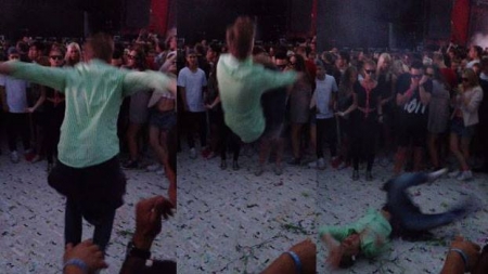 حاول شاب سويدي لفت انتباه الشابات من حوله بقيامه بحركاتٍ بهلوانية فلفت انتباه الجميع حين سقط أرضاً على عنقه مباشرة.