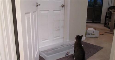 الراي نيوز . حصد فيديو يظهر ذكاء "قط" على قرابة 10 ملايين مشاهدة، حيث يظهر القط وهو يتجاوز حاجزا مائيا يحول بينه وبين باب، و وضع صاحب القط وعاءاً مائياً أمام باب الغرفة التي يريد القط دخولها، وبدأ يصور ردة فعله.