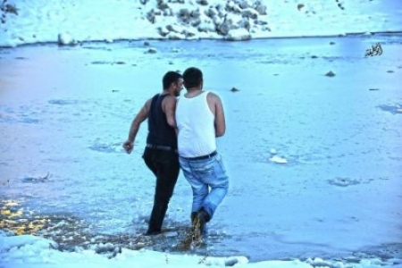 'اﻟﻔﯾس ﺑوك' ﺻورا ﻟﻣواطن ﻓﻠﺳطﯾﻧﻲ ﻣن ﻣدﯾﻧﺔ اﻟﺧﻠﯾل وھو ﯾﻣﺎرس اﻟﺳﺑﺎﺣﺔ ﻓﻲ ﺑرﻛﺔ ﻣﺗﺟﻣدة