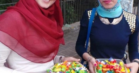 وزعت سيدة عشرينية الحلوى على المارة في جبل الحسين بمساعدة