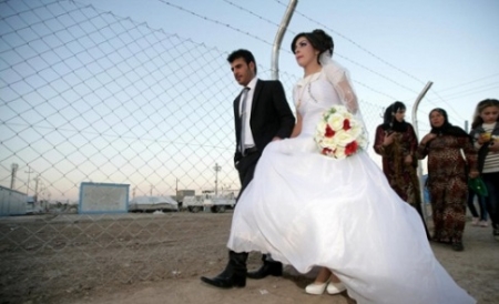 الراي نيوز-قدم لاجئ سوري نصيحة للاردنيين الراغبين بالزواج ،بأن ينتظروا حتى تتحرر سوريا ويتوجهون إليها للزواج فيها. وأوضح السوري الذي احتفل بزفاف ابنه الاسبوع الماضي في مخيم الزعتري ،أن مهور السوريات قليلة ولا تصل ربع مهر الفتاة الأردنية، وهذا ما يخفف العبئ عن كاهل الشاب المقبل على الزواج. كما وأشار اللاجئ إلى أن تكاليف التجهيزات للعروس وللفرح بشكل عام سواء قاعة أفراح أو كسوة العروس قليل جداً ولا يتجاوز الـ300 دينار أردني. وتجدر الإشارة إلى أن اللاجئ السوري احتفل بزواج ابنه من ابنة عمه في مخيم الزعتري بتكاليف قليلة جداً ،وفرحوا كثيراً بالعروسين على الرغم من الظروق السيئة التي واجهوها في بلادهم.