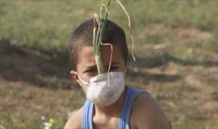 لقي الطفل الفلسطيني محمد عياش احتفاء كبيرا من الفلسطينيين وعلى مواقع التواصل الاجتماعي بعدما انتشرت صورته وهو يضع على وجهه كمامة داخلها بصلة أثناء مشاركته بمسيرة العودة الكبرى.