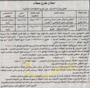 عطاءات صادرة عن وزارة الشباب