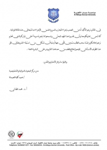 وهنا تؤكد جامعة عمان الأهلية أن جهودها البحثية ما كانت إلا نصرةً للوطن من باب اختصاصها ومحاولة بحثية جادة تحتمل الصواب والخطأ والنتيجة مفيدة في الحالتين.