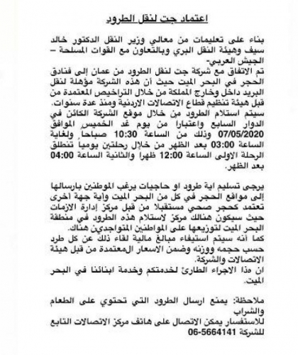 بناء على تعليمات من وزير النقل الدكتور خالد سيف وهيئة النقل البري وبالتعاون مع القوات المسلحة - الجيش العربي.