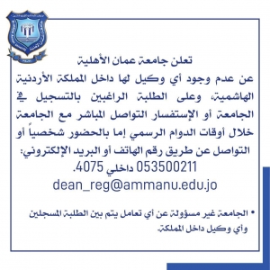 إعلان صادر عن جامعة عمان الاهلية
