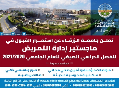 تعلــن جامعــة الزرقــاء عن استمــرار القبول فـي