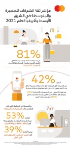 وقال خالد الجبالي، الرئيس الإقليمي لماستركارد في الشرق الأوسط وشمال أفريقيا: "توضح نتائج مؤشر ثقة الشركات الصغيرة والمتوسطة بأن معنويات مختلف الشركات العاملة في المنطقة اليوم مرتفعة. وهذه إشارة إيجابية بالنسبة للمنطقة التي تخوض اليوم رحلة التعافي والانتعاش الاقتصادي، ومؤشر واضح على قدرة التكنولوجيا على المساعدة في تمكين هذا النمو. وتواصل ماستركارد، بصفتها شريكًا تكنولوجياً موثوقًا، العمل عن كثب مع الشركات الصغيرة والمتوسطة في المنطقة لتزويدهم بأدوات وتقنيات مبتكرة لمساعدتهم في تحقيق أقصى فائدة من الاقتصاد الرقمي".