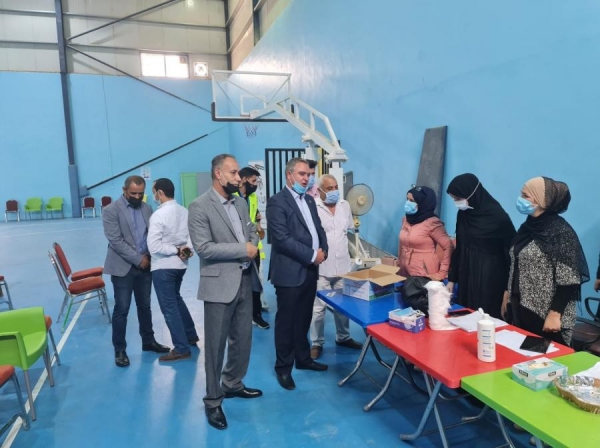 قام وزير الشباب محمد النابلسي اليوم الاربعاء، بزيارة تفقدية لمديرية شباب المفرق ومجمع سمو الامير علي بن الحسين، ومركز تطعيم فايروس كورونا، حيث تفقد المتطوعين الشباب، المشاركين في تنظيم وتطبيق التباعد الاجتماعي بين مُتلقي المطعوم في الصالة الرياضية التابعة لمجمع سمو الامير علي بن الحسين، حيث أثنى على جهودهم التطوعية بمساعدة الكوادر الطبية، منبهاً إياهم لضرورة أخذ الحيطة والحذر، حفاظاً على سلامتهم وسلامة مُتلقي المطعوم والمجتمع المحلي، مؤكداً على أهمية نشر التوعية في المجتمع حول أهمية تلقي المطعوم وضرورة تحفيز المواطنين على أخذه.