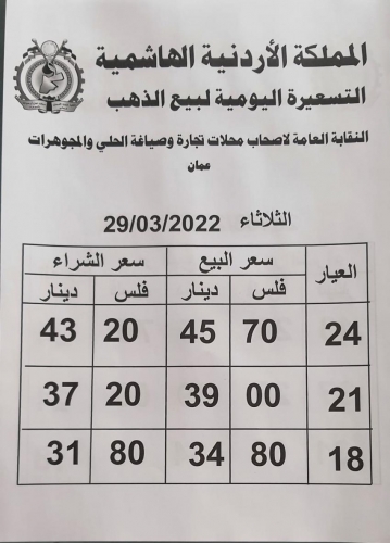 وانخفض سعر بيع غرام الذهب عيار 21 الأكثر طلبا في السوق المحلية بمقدار 30 قرشا ليصل إلى 39 ديناراً، لغايات شراء المواطنين من محلات الصاغة، مقابل 37،20 دينارا لجهة البيع.