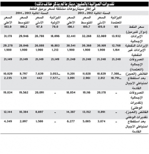 وبين «الوطني»انه اذا جاءت المصروفات الفعلية أقل من مستواها المعتمد في الميزانية بنسبة 5% ـ 15% كما نتوقع، فقد يبلغ فائض الميزانية ما بين 11.9 و14.4 مليار دينار، وذلك قبل استقطاع مخصصات صندوق احتياطي الأجيال القادمة، مشيرا الى ارتباط توقعات السنة المالية القادمة بسيناريوهاتنا الثلاثة، والتي تتراوح فيها أسعار النفط في نطاق ضيق ما بين 98 و103 دولارات للبرميل في السنة المالية 2013/2014.