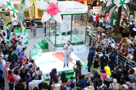 ووسط حشد جماهيري ، اعلن البنك اسم الرابحة التي فوضت ابنها لدخول الغرفة وجمع جائزتها من الدنانير.