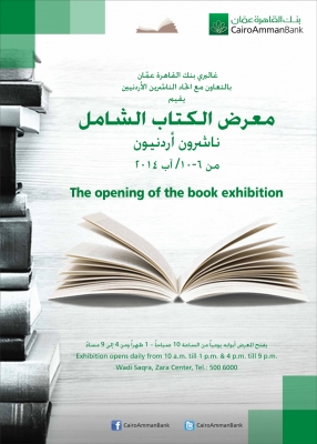 افتتح الاستاذ كمال البكري مدير عام بنك القاهرة عمان وبحضور الاعلامي والكاتب سلطان حطاب ورئيس اتحاد الناشرين الاردنيين وحضور لافت لاصحاب دور النشر الاردنية , الاربعاء السادس من اب في غاليري بنك القاهرة عمان و بالتعاون مع اتحاد الناشرين الاردنيين معرض الكتاب الشامل على سطح بناية زارا في وادي صقرة مبنى الادارة العامة للبنك وذلك في تمام الساعة الخامسة مساء , ولمدة خمسة ايام من السادس الى العاشر من الشهر الجاري , هذا ويقام المعرض بمشاركة ( 28 ) ثمانية وعشرون دار نشر اردنية ستعرض الاف العناوين من الاصدارات في مختلف المواضيع والمجالات , العربية والاجنبية , حيث القى راعي الحفل الاستاذ كمال البكري كلمة البنك تلاها كلمة للاعلامي والكاتب سلطان الحطاب ورئيس اتحاد الناشرين الاردنيين . وقد اقيم ضمن فعاليات المعرض امسية شعرية وحفل توقيع روايات الكاتب الدكتور ايمن العتوم بحضور جمهور المعرض .