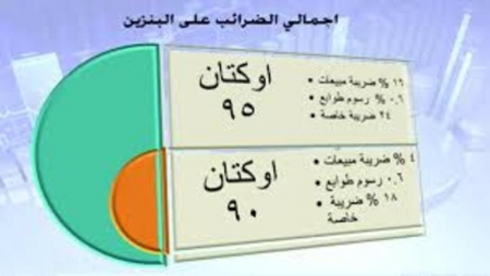 اما البنزين اوكتان 95، فسجلت اجمالي الضرائب المفروضة ما نسبته 40.6 %، منها 16 % ضريبة مبيعات، و 24 % ضريبة خاصة و0.6 رسوم طوابع.