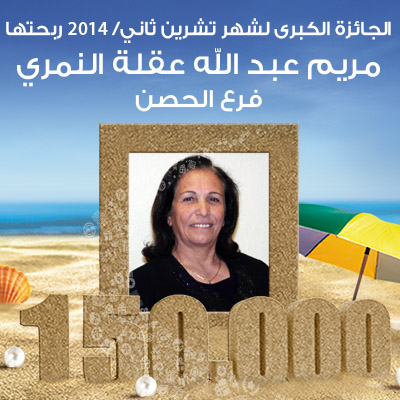 أعلن بنك الإسكان عن نتائج السحب على "الجائزة الشهرية الكبرى " لجوائز حسابات التوفير لشهر تشرين ثاني الحالي والتي تبلغ قيمتها 150 ألف دينار حيث فازت بها الفاضلة " مريم عبد الله عقلة النمري " وهي صاحبة حساب توفير لدى بنك الإسكان / فرع الحصن .