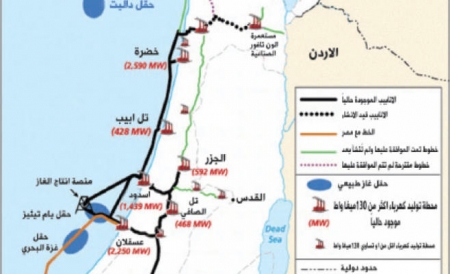 الراي نيوز - نشرت وزارة البنية التحتية الإسرائيلية على موقعها الرسمي على شبكة الإنترنت خريطة لشبكة خطوط نقل الغاز الطبيعي من البحر الأبيض المتوسط إلى دول المنطقة تصل تفرعاتها إلى الحدود الغربية للمملكة.
