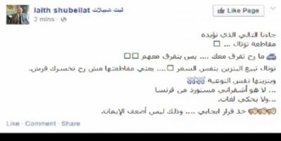 الشبيلات بدأ بالترويج لدعوة المقاطعة عبر 'الفيسبوك' وال'التويتر'.