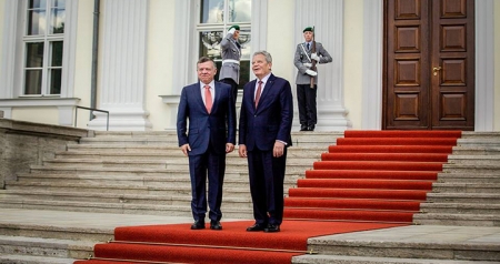 كان في مقدمة مستقبلي جلالة الملك، لدى وصوله موقع الحفل، الرئيس الألماني يواخيم غاوك
