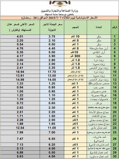 النشرة الاسترشادية لاسعار السلع ليوم الثلاثاء