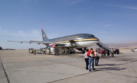 وكان في استقبال الطائرة وزيرة السياحة لينا عناب ورئيس مفوضية منطقة العقبة الاقتصادية الخاصة ناصر الشريدة ورئيس هيئة تنشيط السياحة د.عبدالرزاق عربيات وعدد من المسؤولين في الوزارة والمفوضية.