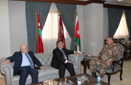 - استقبل رئيس هيئة الأركان المشتركة الفريق الركن محمود عبد الحليم فريحات في مكتبه بالقيادة العامة, الخميس، رئيس غرفة تجارة عمان العين عيسى حيدر مراد, حيث تبرعت غرفة تجارة عمان بمبلغ (100) ألف دينار أردني دعماً لصندوق أسر شهداء القوات المسلحة والأجهزة الأمنية، وتأكيداً على وقوف القطاع التجاري والخدمي بالمملكة وبكافة مكوناته خلف القيادة الهاشمية الحكيمة، والقوات المسلحة والأجهزة الأمنية الباسلة، وإحساساً منها بالمسؤولية الوطنية والمجتمعية, في ظل الظروف الاقتصادية والسياسية الصعبة.