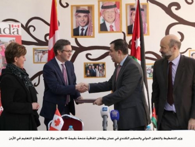 ووقع الجانبان الاتفاقية التي تعادل قيمتها (حوالي 58ر7 مليون دولار أميركي)، بحضور وزير التربية والتعليم الدكتور عمر الرزاز ووزيرة التنمية الدولية والفرنكوفونية الكندية ماري كلود بيبو.