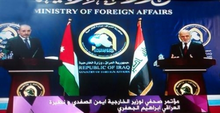 وقال الصفدي خلال المؤتمر الصحفي الذي عقده وزير الخارجية العراقي ابراهيم الجعفري خلال زيارة الصفدي الى بغداد اليوم الخميس، ان الوزيرين تباحثا في ملف اعادة فتح معبر طريبيل الحدودي وتأمين الطريق الدولي بين بغداد وعمان تأكيدا على هزيمة الارهاب.