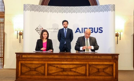 ووقع الاتفاقية المدير التنفيذي لمؤسسة ولي العهد بالوكالة، نور أبو الراغب، ورئيس شركة إيرباص لمنطقة أفريقيا والشرق الأوسط، ميكائيل هواري.