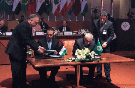 وجاء توقيع الاتفاقية بحضور مسؤولين من جامعة الدول العربية، فيما وقعت جمهورية مصر العربية على ذات الاتفاقية.