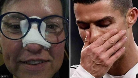 وأصيبت المشجعة إلينا دي مارتينو، بكسر في الأنف كما انكسرت نظاراتها من جراء كرة رونالدو خلال مباراة يوفنتوس مع فريق كييفو فيرونا.